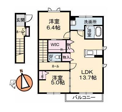 | 間取り詳細 | LDK13.7 洋6.4 洋5 |