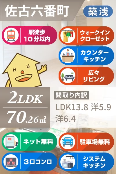- バス停「佐古六番町」まで200m