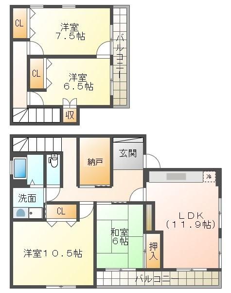 | 間取り詳細 | LDK11.9 和6 洋10.5 洋7.5 洋6.5 |