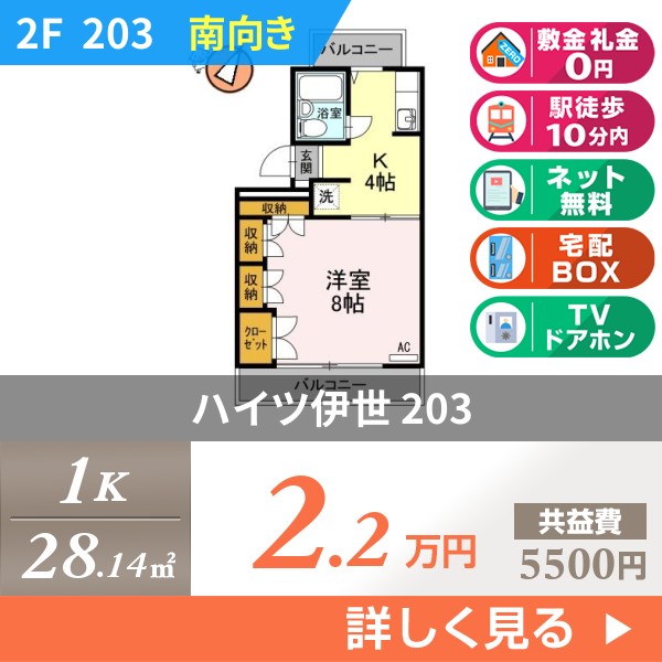 | 物件管理名 | ハイツ伊世 302 |