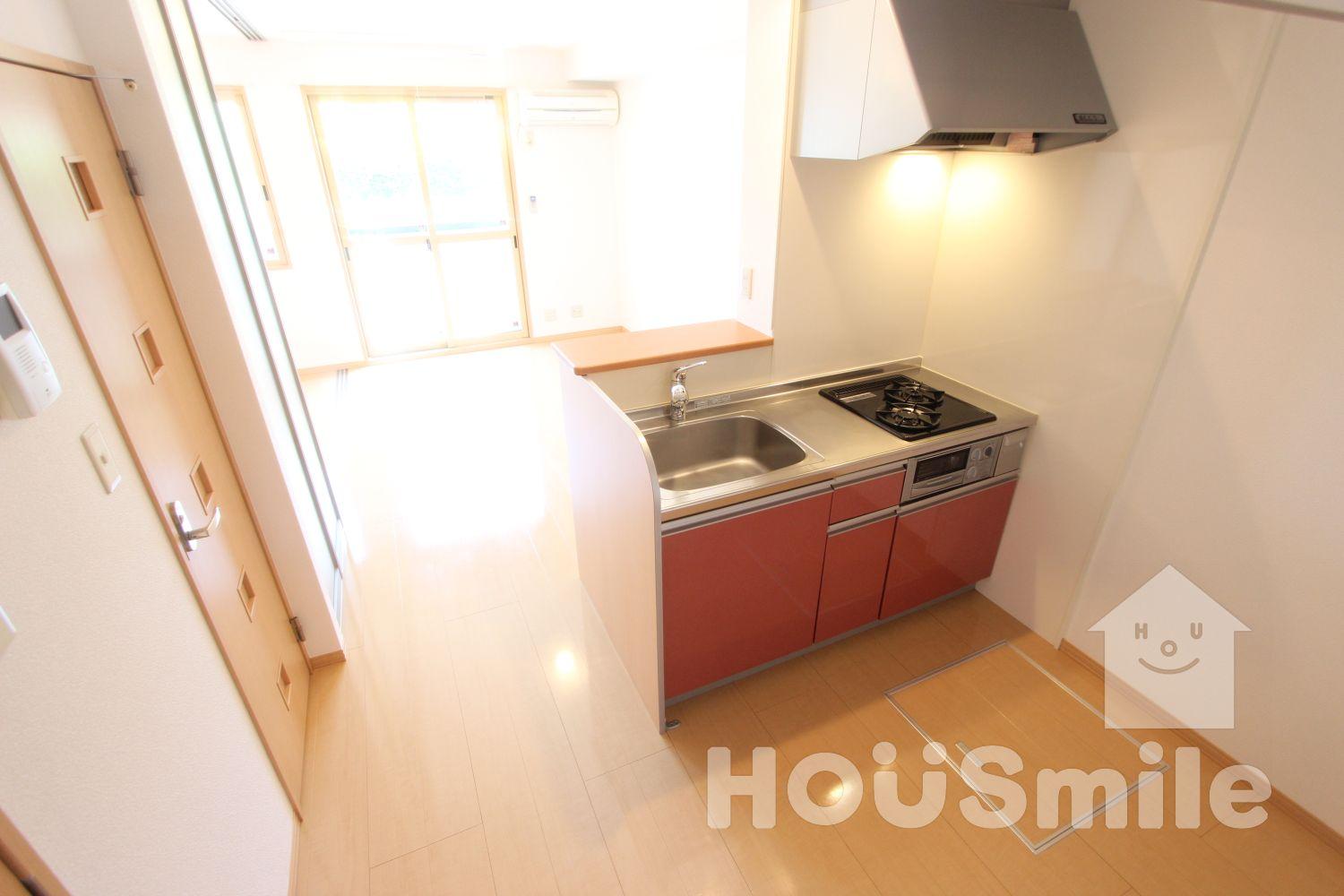 【住吉エリアの1LDK】都市ガス採用で光熱費がお得。対面キッチンには2口ガスコンロが設置済みです。