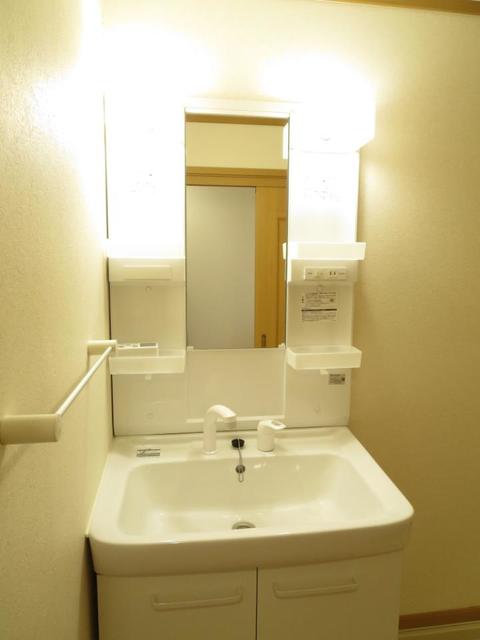 日開野町居内エリアの南向きの1Rアパート。朝の準備も快適な独立洗面台。