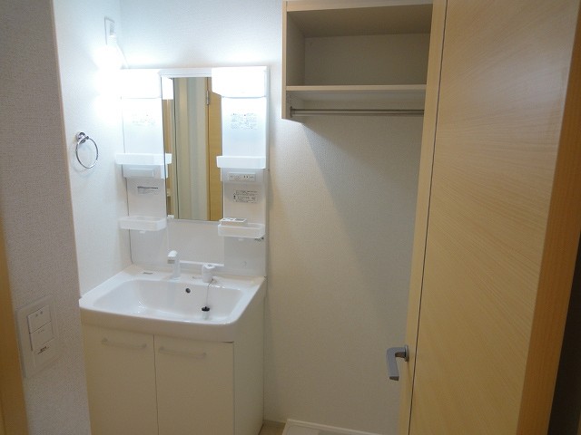 住吉で宅配ボックスも嬉しい1LDKアパート。収納豊富な独立洗面台も嬉しいですね。