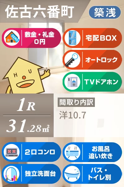 【インターネット無料・築浅なのに礼金0円・オートロック】国道192号線沿い。人気の佐古エリアの築浅マンション。