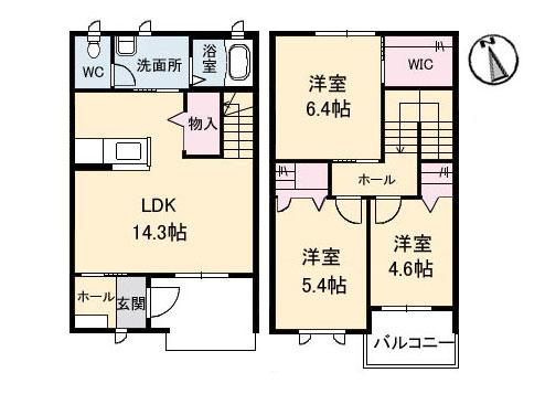 | 間取り詳細 | LDK14.3 洋6.4 洋5.4 洋4.6 |