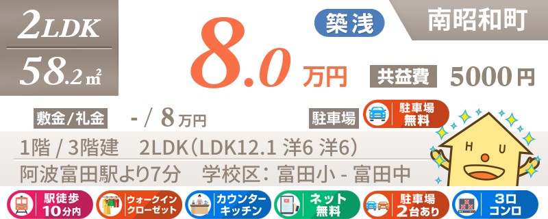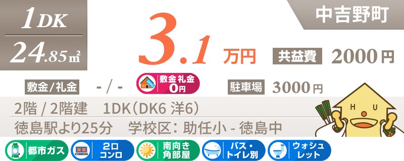 【JR佐古駅まで徒歩3分】生活便利な佐古エリアの2DKタイプ★お家賃とってもリーズナブルです♪