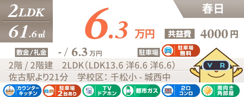 家賃、共益費、駐車場1台含めても毎月たったの3.8万円!お家賃をお安く抑えたい方にオススメです!