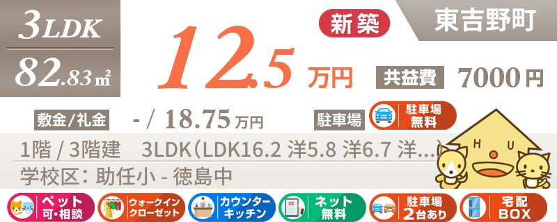 【インターネット無料】JR佐古駅徒歩2分!ハローズやローソンが揃ってお買い物便利な佐古エリアの3LDKです!