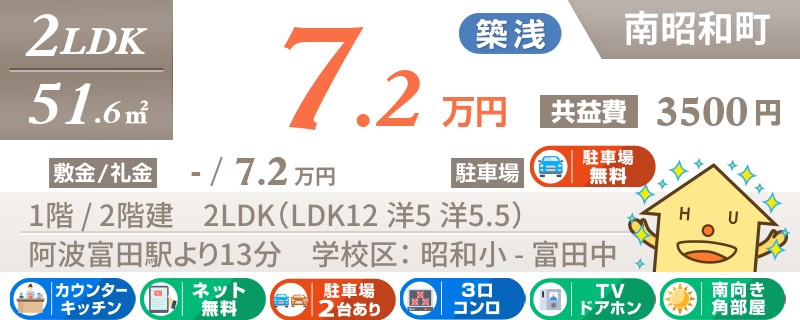 【ネット無料】大好きなペットと暮らせる八万町の築浅2LDK!徳島南環状線にアクセス便利な立地です!