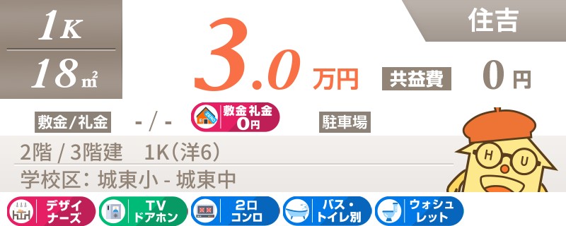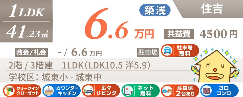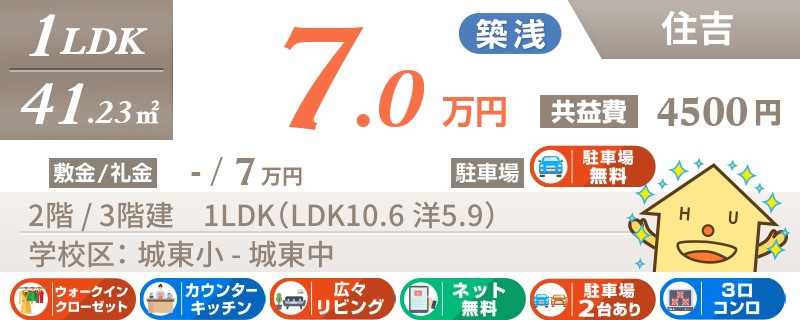 【生活便利な住吉エリアの3LDK】スーパーまで徒歩4分!光熱費が抑えられる都市ガス物件です♪