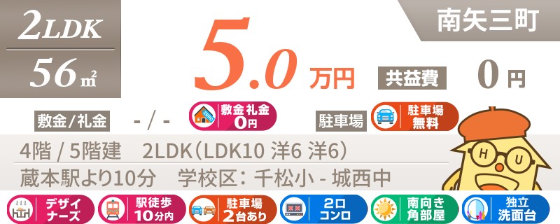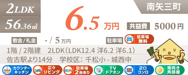【駐車場1台無料・礼金0円・室内リフォーム済み】毎月のお家賃リーズナブルな南矢三町の2LDK!!