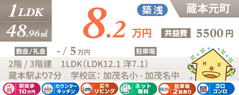 【インターネット無料】敷金&礼金0円のオシャレなリノベーション物件♪JR蔵本駅まで徒歩2分!