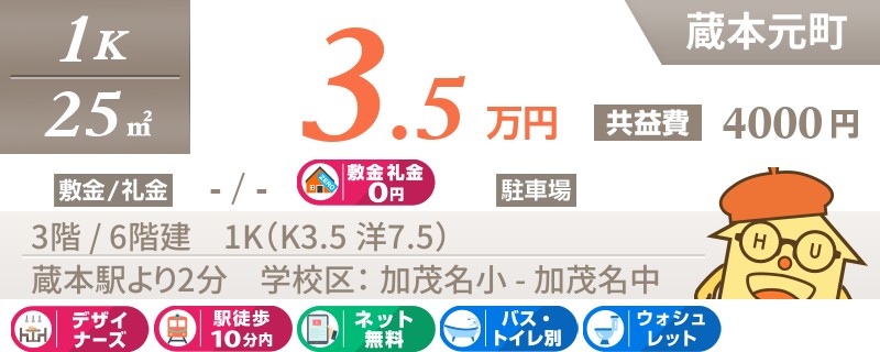蔵本元町 マンション 1K 502