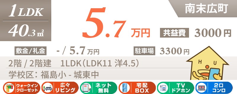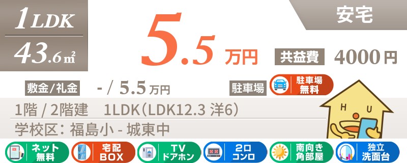 【ネット無料】市内中心部へのアクセス便利な福島エリア。