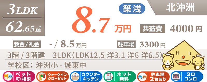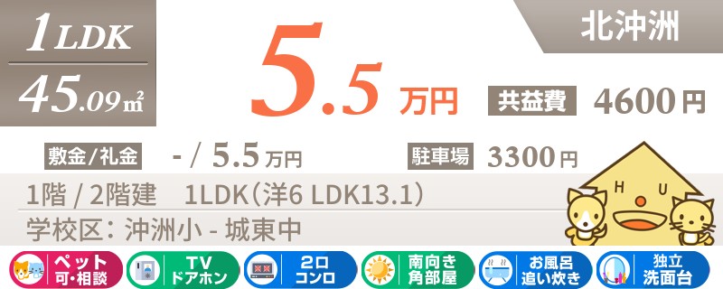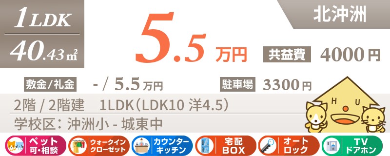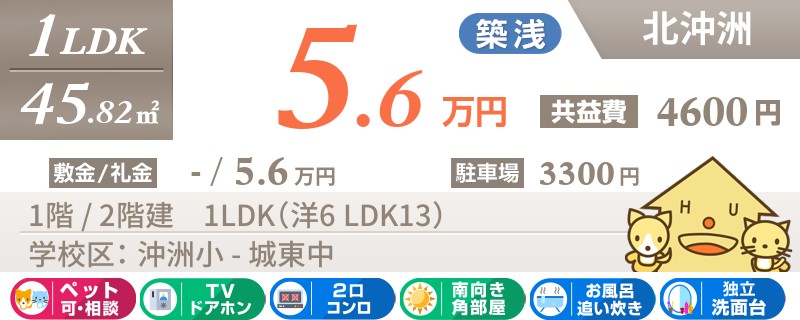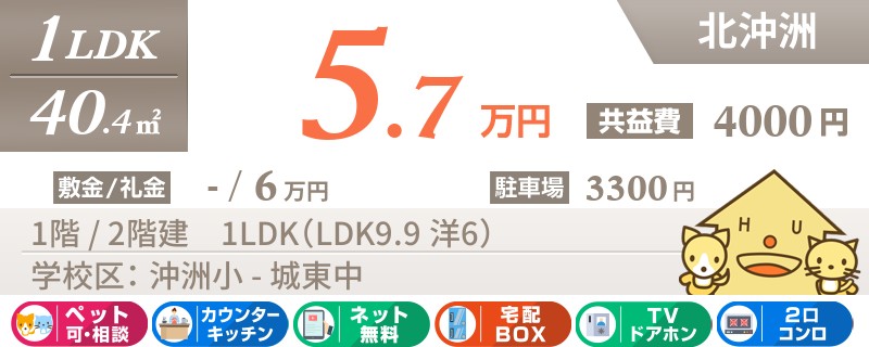 【エアコン2台・ペット可・ネット無料】ペットと一緒に住めちゃう沖洲エリアの築8年の1LDK★