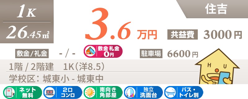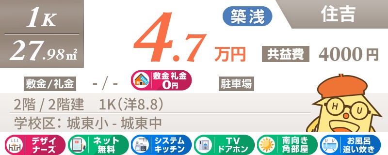 助任小学校まで徒歩6分!ネット無料使い放題のお家賃リーズナブルなお部屋です。
