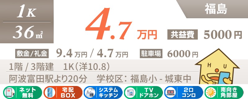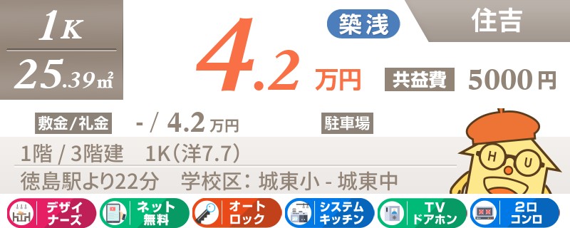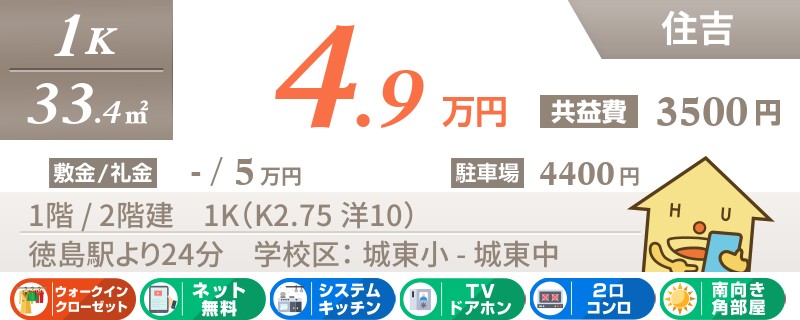 【駐車場1台無料】【都市ガス】【ネット無料】JR徳島駅へアクセス便利な安宅エリア!
