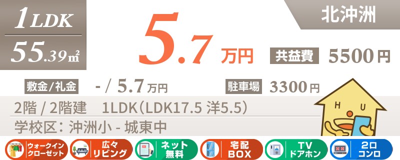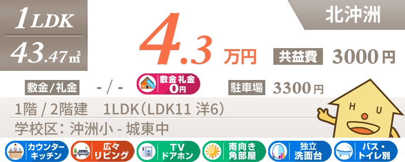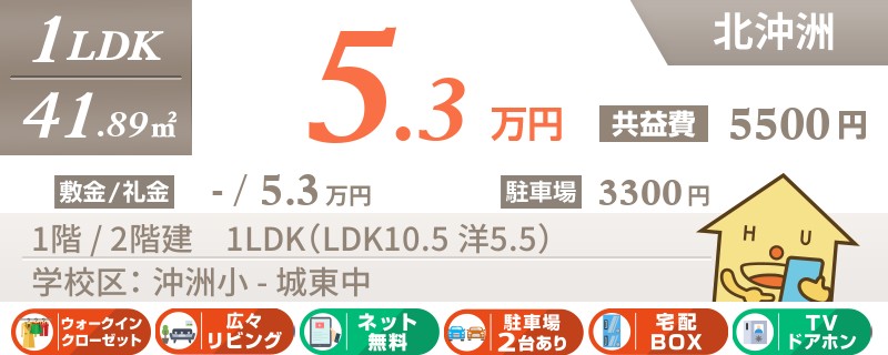 【インターネット無料】【駐車場1台無料】大通りにもアクセスの良い沖洲エリアの1LDK★