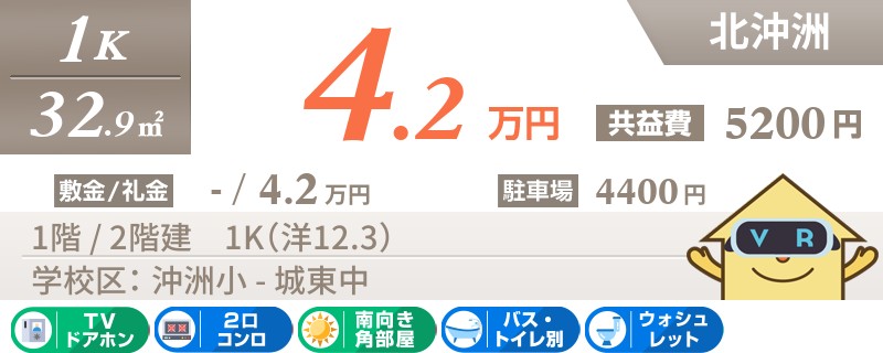 北沖洲 マンション 1K 203