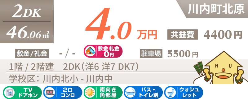 川内町北原の2DKアパート。
