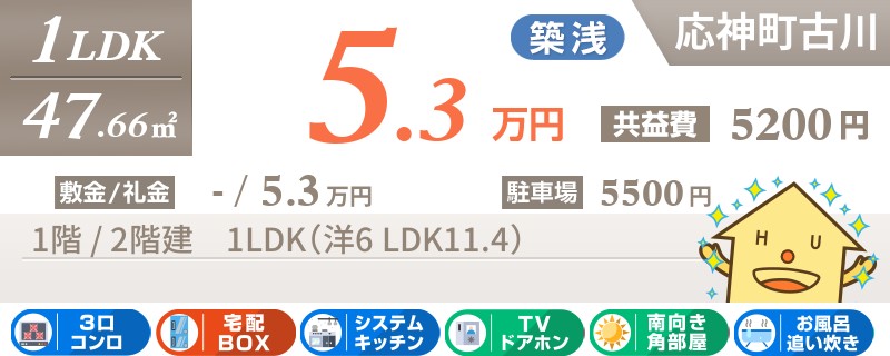 応神町古川で宅配ボックスも嬉しい築浅1LDKアパート。