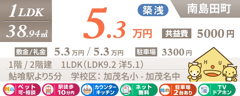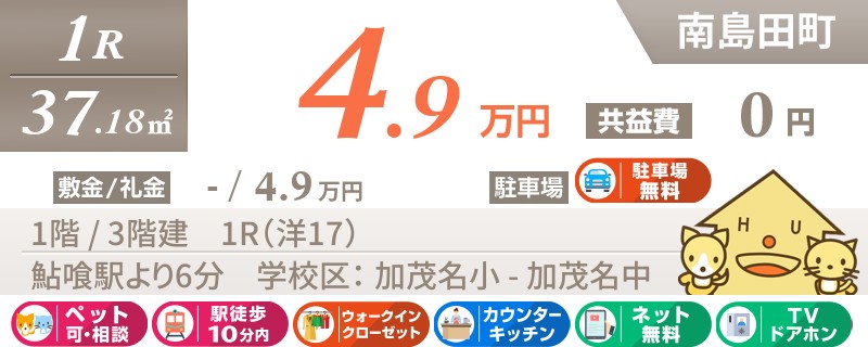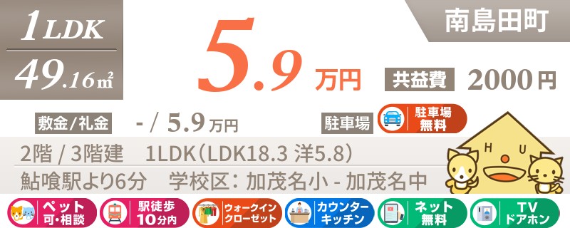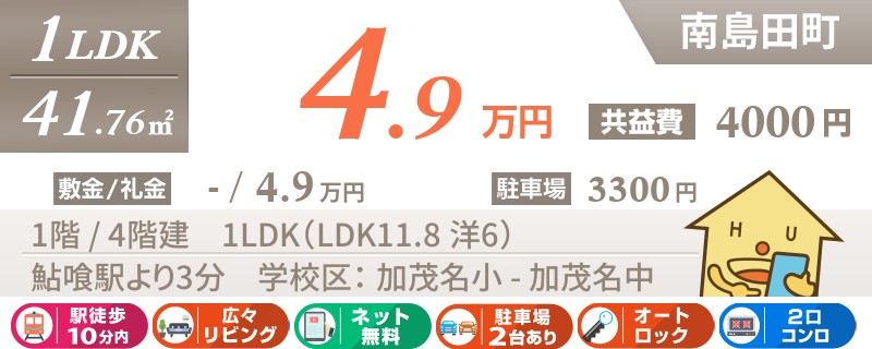 【ネット無料・ペット可】徳島では数少ないペット飼育OKの築浅1LDK★お買い物も便利な南島田町エリア★