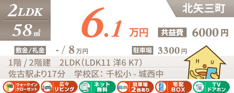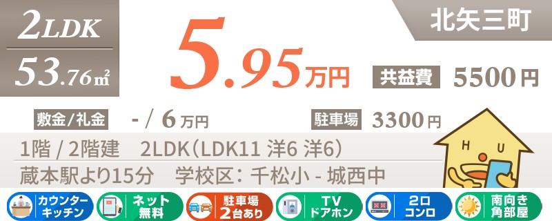 【駐車場1台無料・室内リフォーム済み・礼金0円】大通りにアクセスの良い南矢三町エリア2LDK。