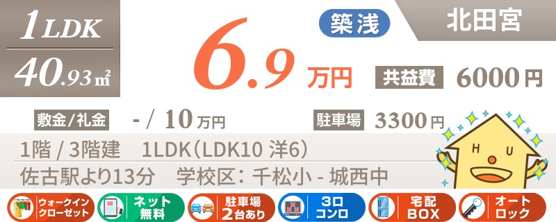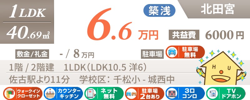 【ネット無料・礼金0円・水道代無料・物置付】生活便利な田宮エリアのオール電化マンション★駐車場縦列区画は小型車2台推奨★