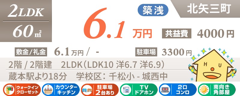 大通りへのアクセスが良い北矢三エリアの築浅2LDK!人気の2階角部屋です!