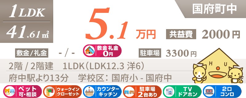 【ペットと暮らせるお洒落な1LDK】国道192号線まで徒歩8分!国府エリアの2階のお部屋!