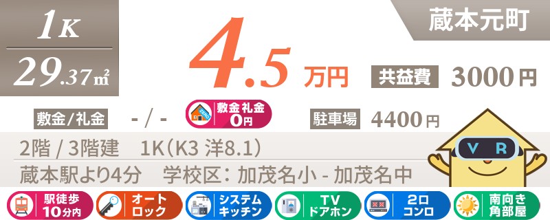 【ネット無料・独立洗面台・礼金0円】JR蔵本駅まで徒歩3分の1Kマンション★