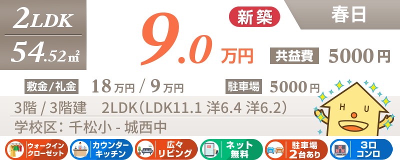 【全室エアコン完備・ネット無料・最上階角部屋】人気の春日エリアに新築2LDK完成しました。