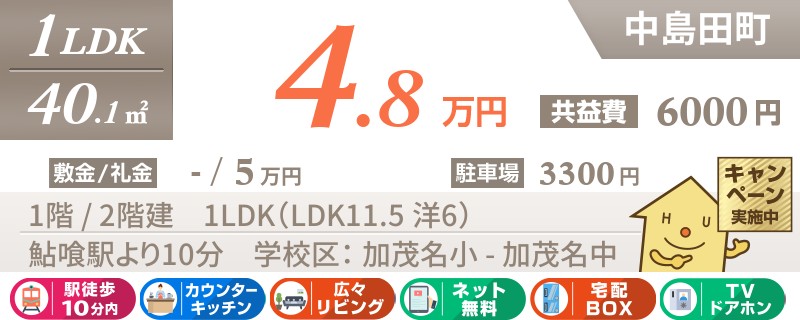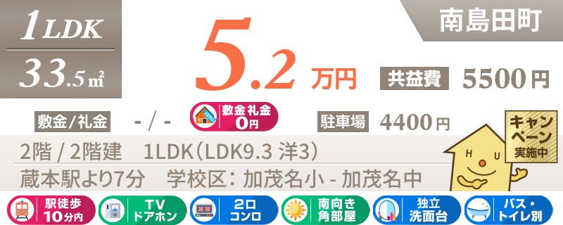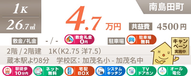 2月中までの申込の方限定【初期費用3万円】になるお得なキャンペーン対象物件。ネット無料で毎月もお得★
