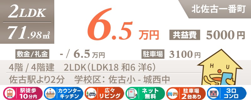 【JR佐古駅まで徒歩3分】都市ガス採用で光熱費が抑えられます!コンビニやスーパーなども徒歩圏内♪