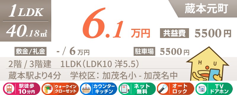 【ネット無料使い放題!】人気の蔵本エリアに空き情報が!宅配BOXやオートロック付きで設備充実です。