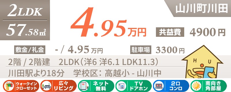山瀬駅から徒歩11分のネットも無料の2DKアパート