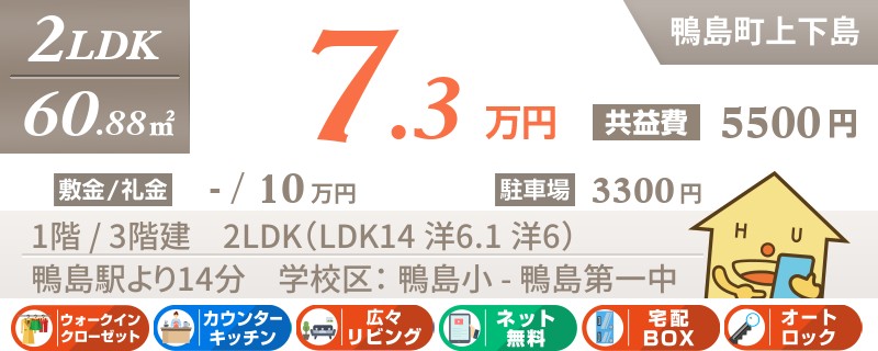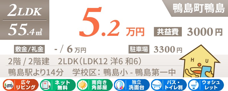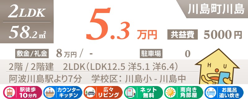 阿波川島駅から徒歩7分のネットも無料の2LDKアパート