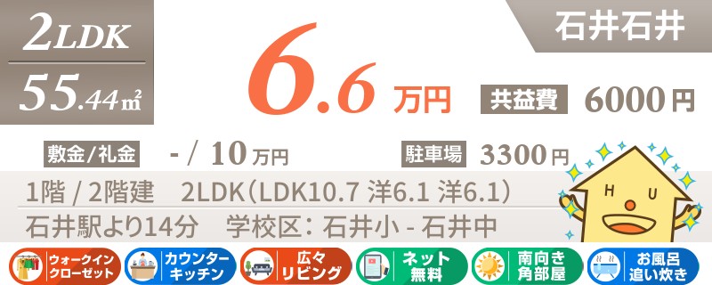 石井駅から徒歩8分のネットも無料の2LDKアパート